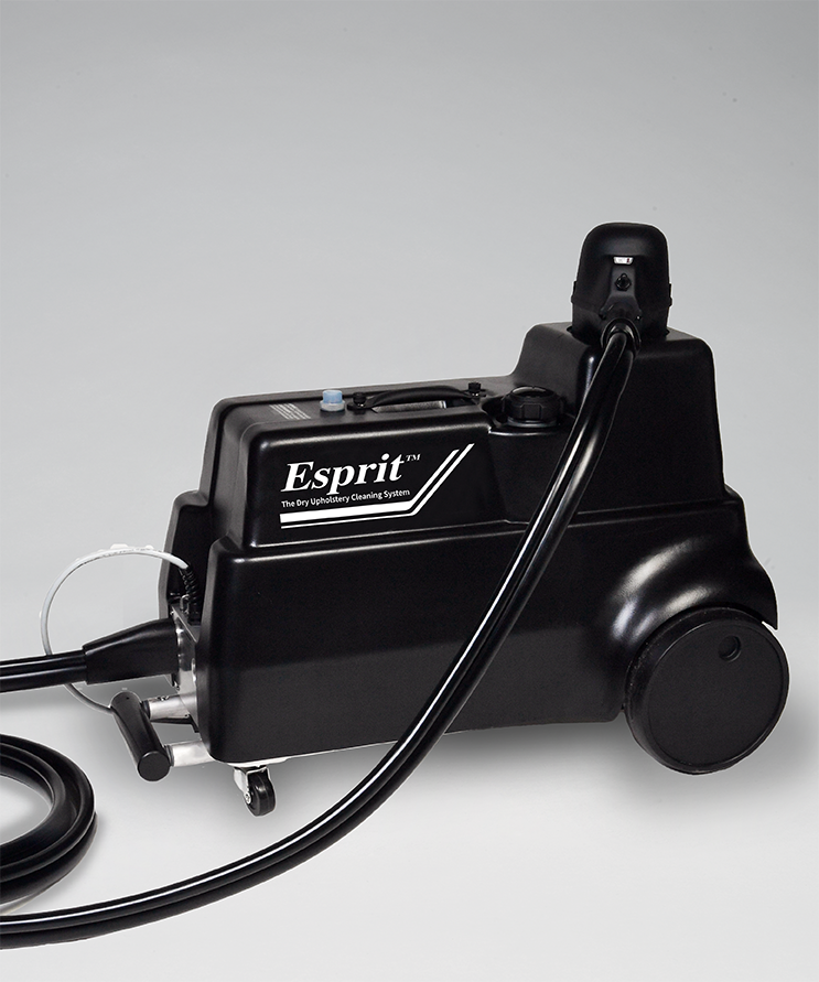 Safely clean most upholstery fabrics and leather furniture quickly and easily, never any shrinkage or sticky residue. The Esprit machine and detergent work together to create a special dry foam, which is worked onto fabric surfaces with a counter-rotating brush action that agitates the foam while stabilizing the fabric. Dry foam encapsulates the dirt and are removed by vacuuming.