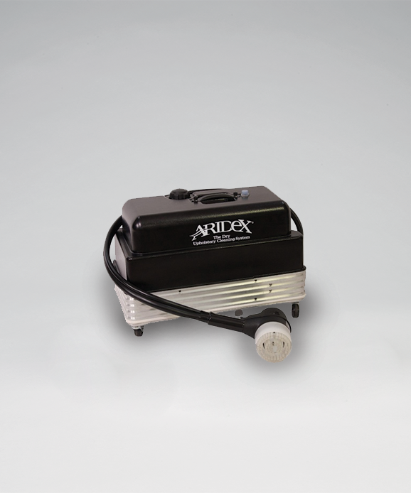 The Aridex machine and detergent work together to create a special dry foam, which is worked onto fabric surfaces with a counter-rotating brush action that agitates the foam while stabilizing the fabric. Dry foam encapsulates the dirt and are removed by vacuuming.